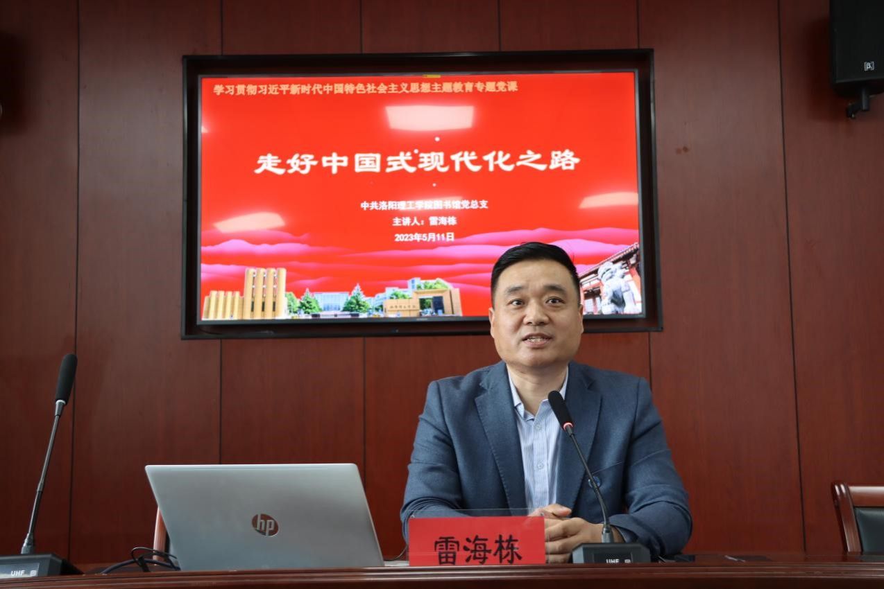 根据图书馆主题教育的整体安排,5月11日,在图书馆501会议室。图书馆馆长雷海栋以《走好中国式现代化之路》为题为图书馆全体党员干部讲授专题党课。