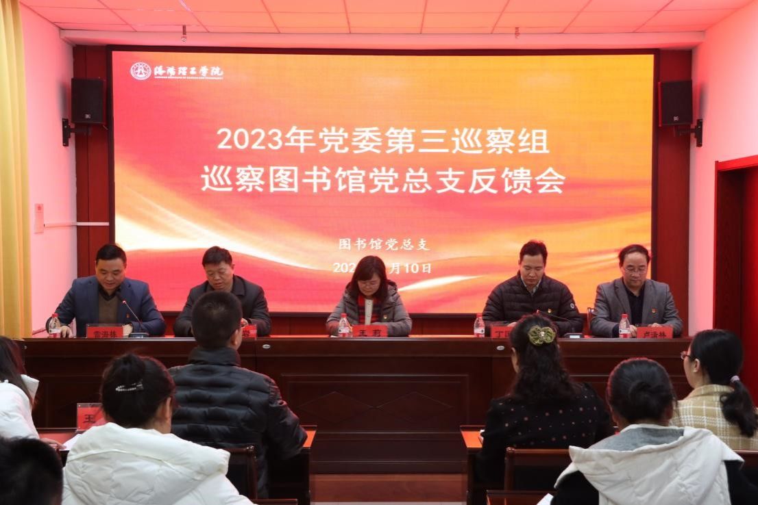 1月10日下午,校党委第三巡察组召开巡察图书馆党总支反馈会。会议由图书馆馆长雷海栋主持。