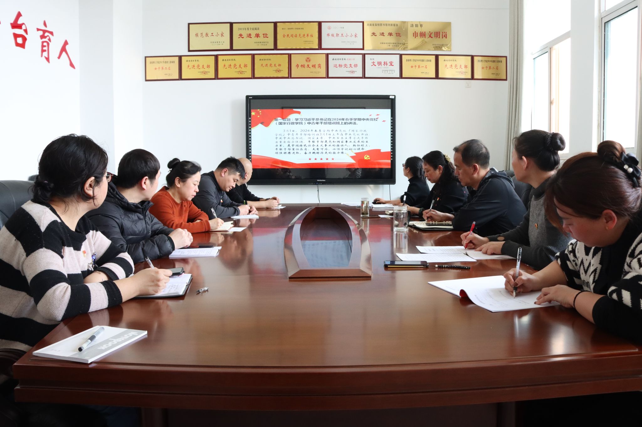 3月14日下午,图书馆党总支第一党支部在王城校区图书馆505会议室举行会议,支部书记聂转华以《学习全国两会精神 汲取奋进向前力量》为主题上党课,一支部全体党员参加会议。