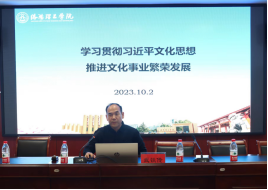 武铁传教授从习近平文化思想的概念入手,深入浅出地介绍了习近平文化思想提出的背景,总结了习近平文化思想的主要内容和鲜明特点。武教授指出,习近平文化思想内涵丰富、论述深刻,是新时代党领导文化建设实践经验的理论总结,丰富和发展了马克思主义文化理论。武教授还结合图书馆和学报编辑部职能,提出依托特色资源传承河洛文化、对接教学科研联合攻坚克难、拓宽传承渠道促进文化交流等贯彻落实的建议措施。
