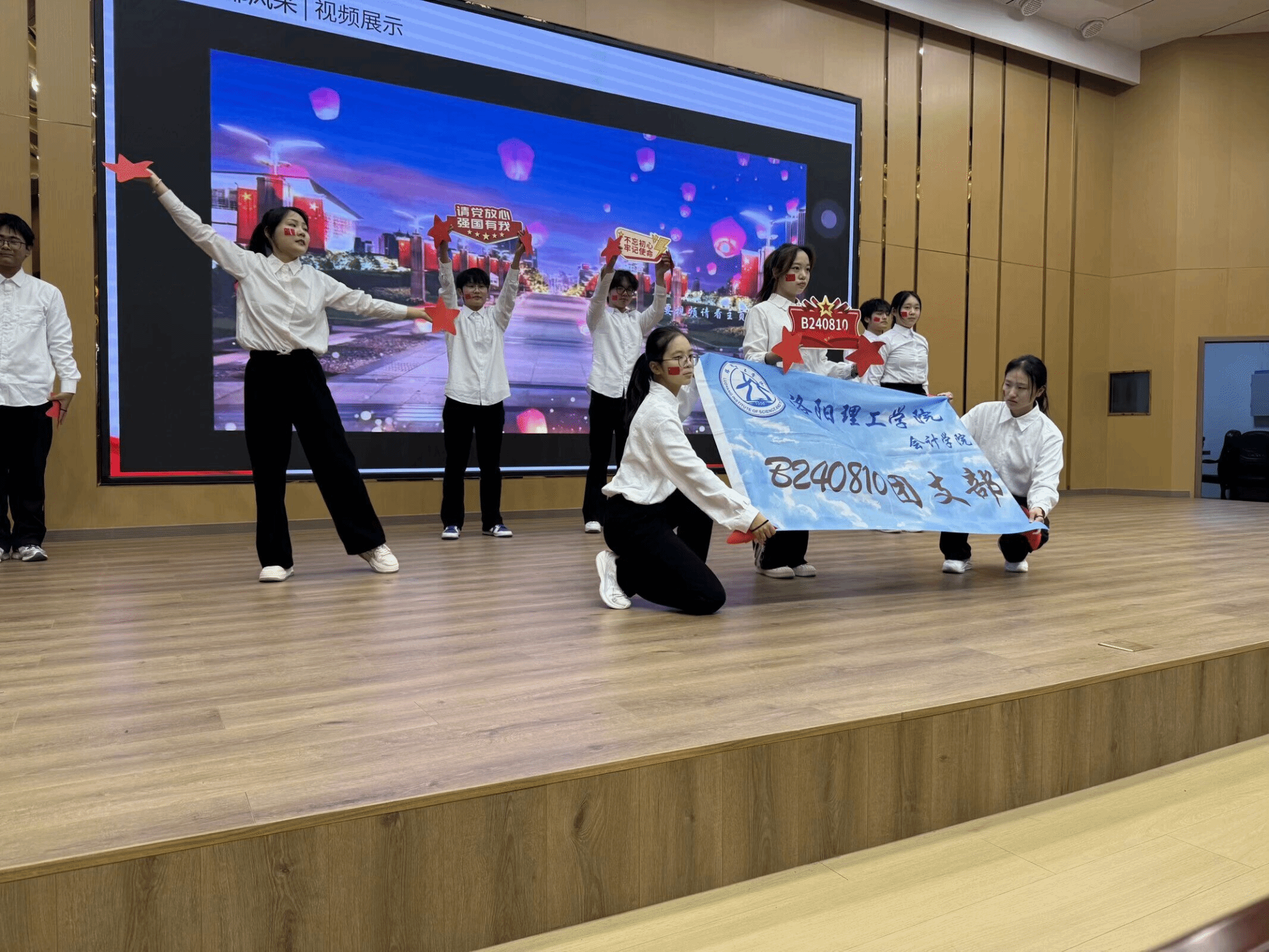 活动开始,各团支部依次上台展示。激情澎湃的合唱,歌声中洋溢着青春的活力与热情;生动的舞台剧,演绎了团支部成员们团结协作、共同进步的故事;精美的视频展示,回顾了入学以来的点点滴滴。他们通过精彩的演讲、生动的视频、活力四射的表演等形式,全方位地展示了团支部在思想建设、组织建设、志愿服务、文体活动等方面的突出成果和独特风采。每个团支部的展示都各具特色,充分展现了青年团员们的朝气蓬勃和团结奋进。