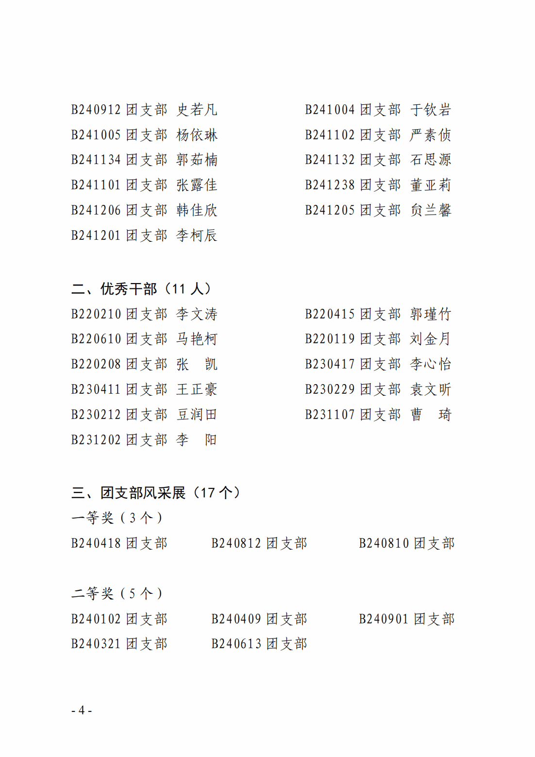 关于表彰2024级新任团支部书记学习班的决定