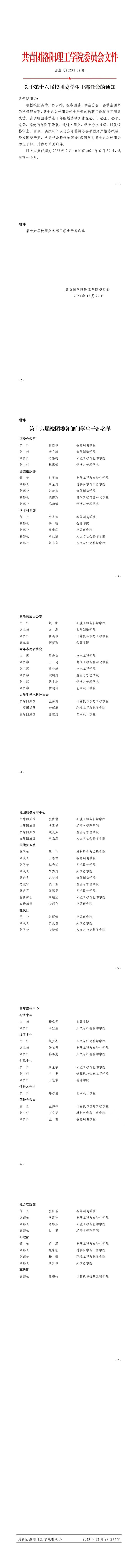 关于第十六届校团委干部任命的通知