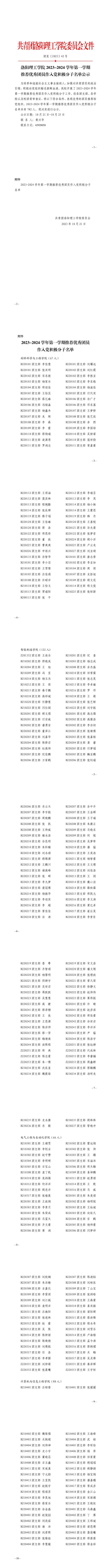 美高梅娱乐场 2023-2024学年第一学期推荐优秀团员作入党积极分子名单公示