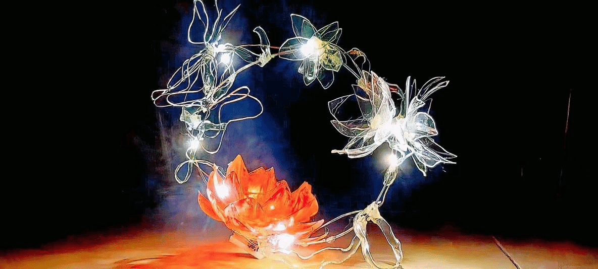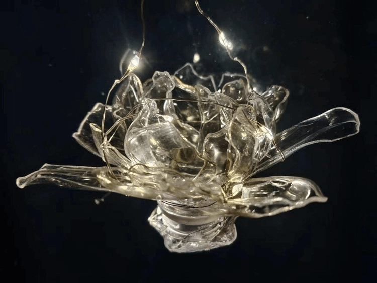 作品用废旧塑料瓶编制出一朵永远盛开的莲花,实现废物再利用,以最环保的方式诠释着“一念心清静,莲华处处开”。作者以电视剧莲花楼为灵感制作,立意为不破不立,不落淤泥,何以成莲,温润下对执念与江湖正道的坚定支持。由传承与情谊塑造的东方美学,打造出江湖永不落慕、理想终有继承的史诗感。