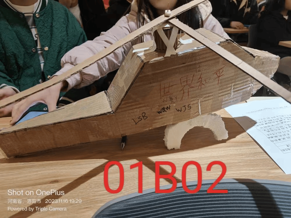 凌晨代表着初升的太阳,是黎明的象征,代表着即将破晓,而我们的作品是直升机,代表着天空和自由,直升机模型的主要材料是我们室友的快递盒子,和各种废纸再加上我们团队的奇思妙想组成的。凌晨四点的直升机代表着我们青年敢于冲破黑暗,冲向光明,有着无限光明的前途。