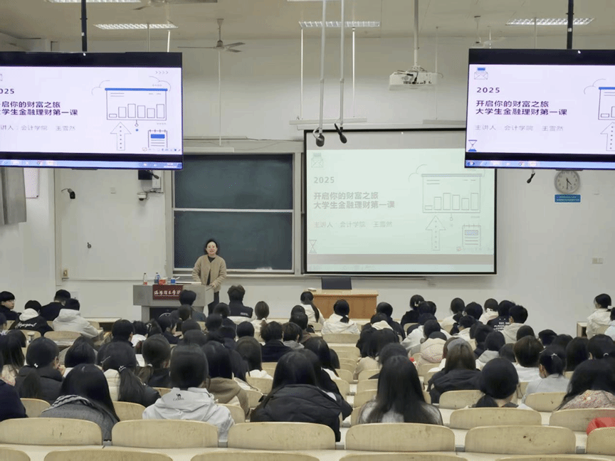 王雪然老师围绕大学生生活费管理、基金国债等低风险理财工具进行讲解,帮助学生掌握基础金融知识。