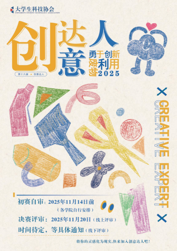 将组织初评,并于11月14日前推荐不超过3件作品参加决赛。决赛计划于11月20日启动,通过线上投票与线下展示相结合的方式评定一、二、三等奖。所有参赛学生均可获得相应素拓分。欢迎同学们积极准备并参与。