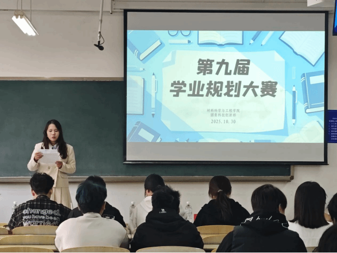 在王城校区材料楼ES303教室举办第九届学业规划大赛。比赛通过规划内容评审与现场陈述展示,引导学生明确学习目标,增强学业发展的计划性与主动性