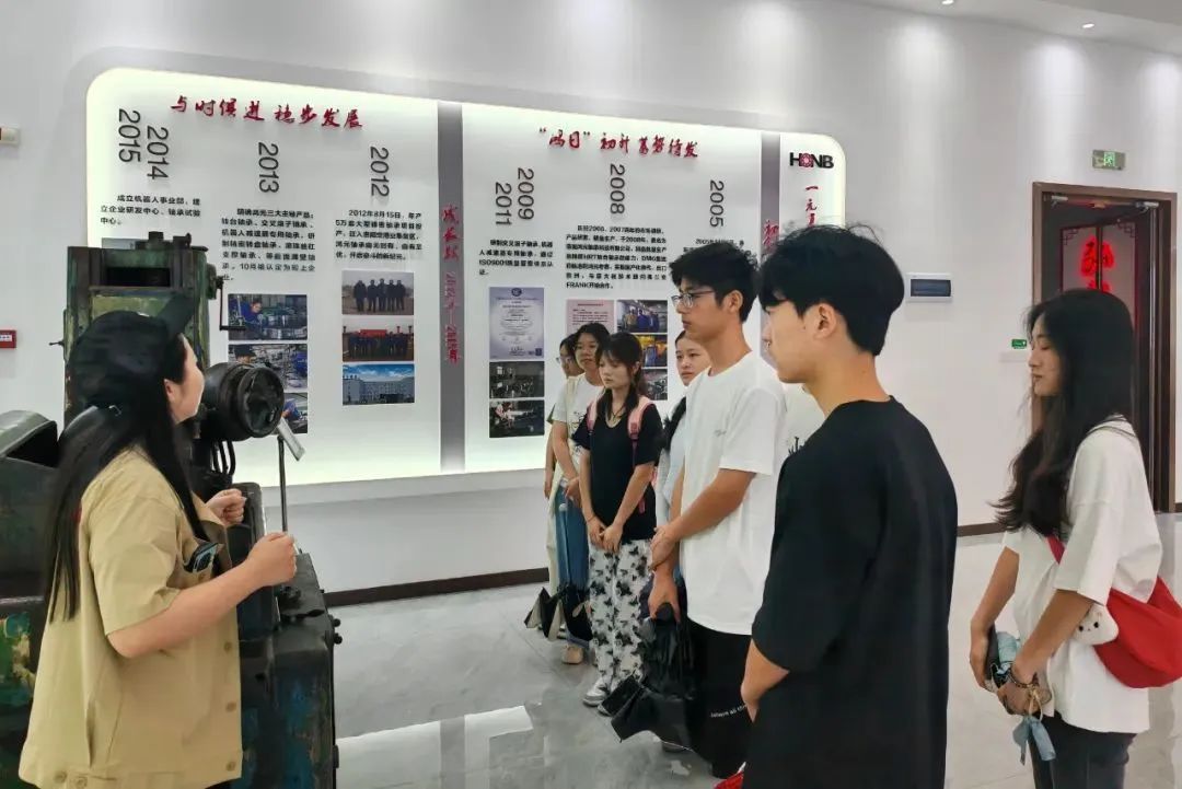 在校友的带领下,实践团成员先后参观了企业展馆、生产车间、研发中心等区域,具体地介绍了公司的产品线、生产工艺以及科技创新等方面取得的丰硕成果。在参观过程中,同学们参观了先进的自动化生产设备以及严谨的质量检测流程,深切体会到科技创新对企业发展和社会进步的重要推动作用。