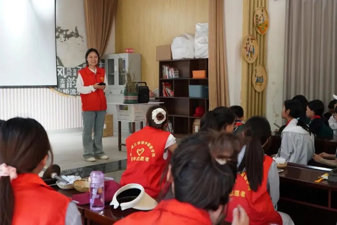 实践团队员在香囊制作完成后,将非遗文化的传播与语言学习相结合,为孩子们上了一堂精彩有趣的英语小课堂。在课堂提问环节中,孩子们从最初的羞涩,到后来的积极参与,赢得了在场所有人的肯定与称赞。本次小课堂不仅有利于激发学生们学习英语的热情,同时在潜移默化中传承了民俗非遗文化。
