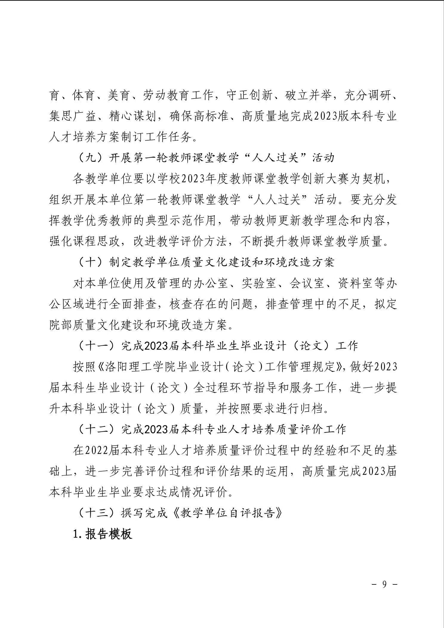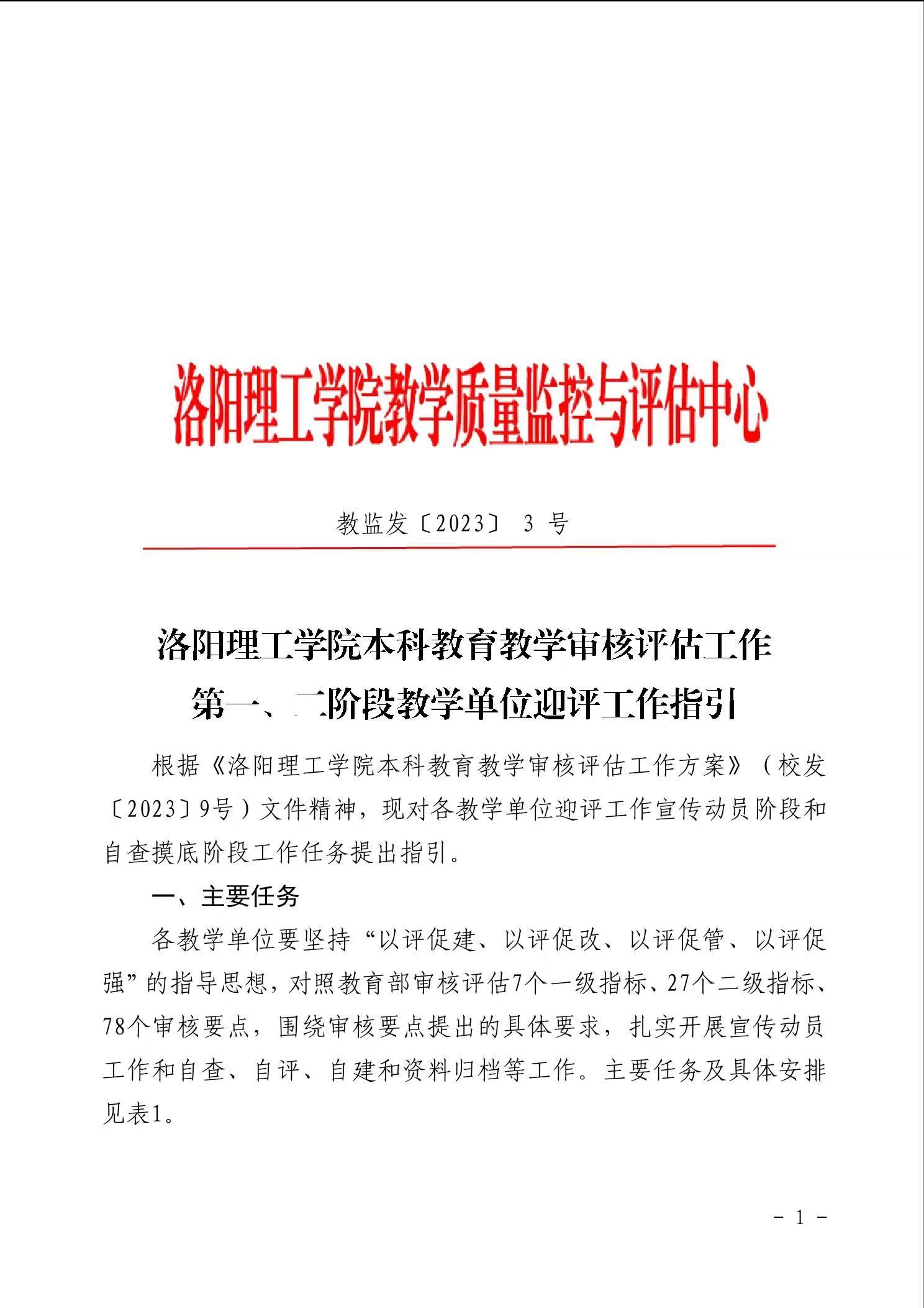美高梅娱乐场 本科教学工作审核评估第一二阶段教学单位迎评工作指引(教监发[2023]3号)