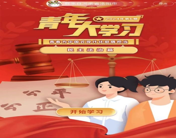 学习党的创新理论,争做新时代好青年。青年大学习推出“青春为中国式现代化挺膺担当”系列特辑,今天和大家见面的是“青年大学习”2024年第6期。人民民主是社会主义的生命,是全面建设社会主义现代化国家的应有之义。全过程人民民主是社会主义民主政治的本质属性,是最广泛、最真实、最管用的民主让我们争做尊法、学法、守法、用法的新时代好青年,为我国的民主法治建设贡献青年力量。