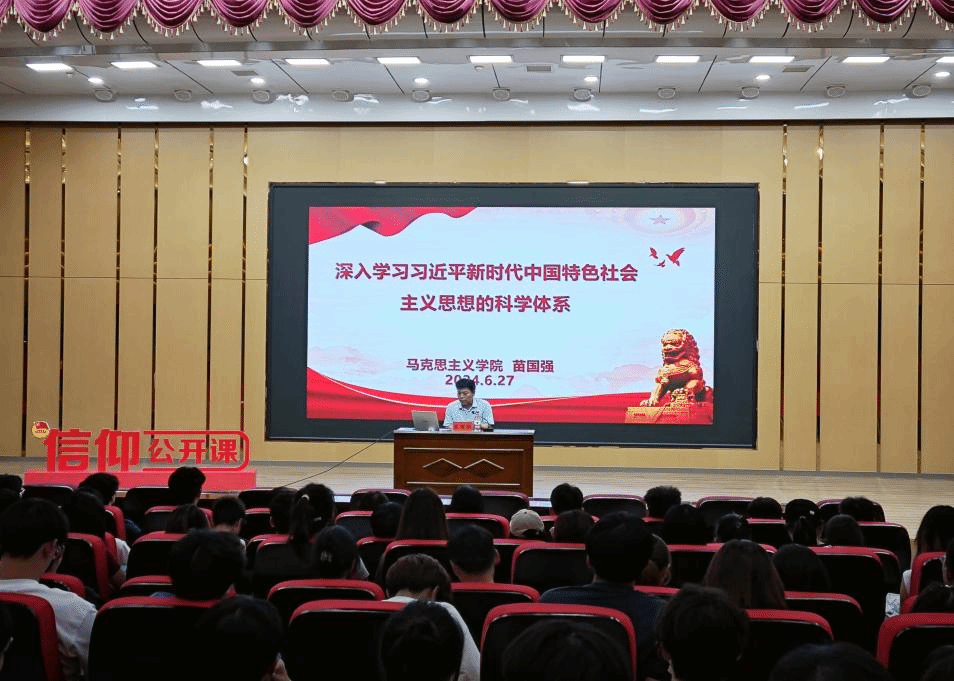 院长苗国强教授,围绕《深入学习习近平新时代中国特色社会主义思想的科学体系》为主题展开,深入探讨其内容及意义。习近平新时代中国特色社会主义思想包括“十个明确”“十四个坚持”“十三个方面成就”等核心内容。同时,习近平新时代中国特色社会主义思想也是马克思主义中国化的最新成果,对于推动社会主义现代化建设,实现国家富强、民族复兴意义巨大,影响深远。