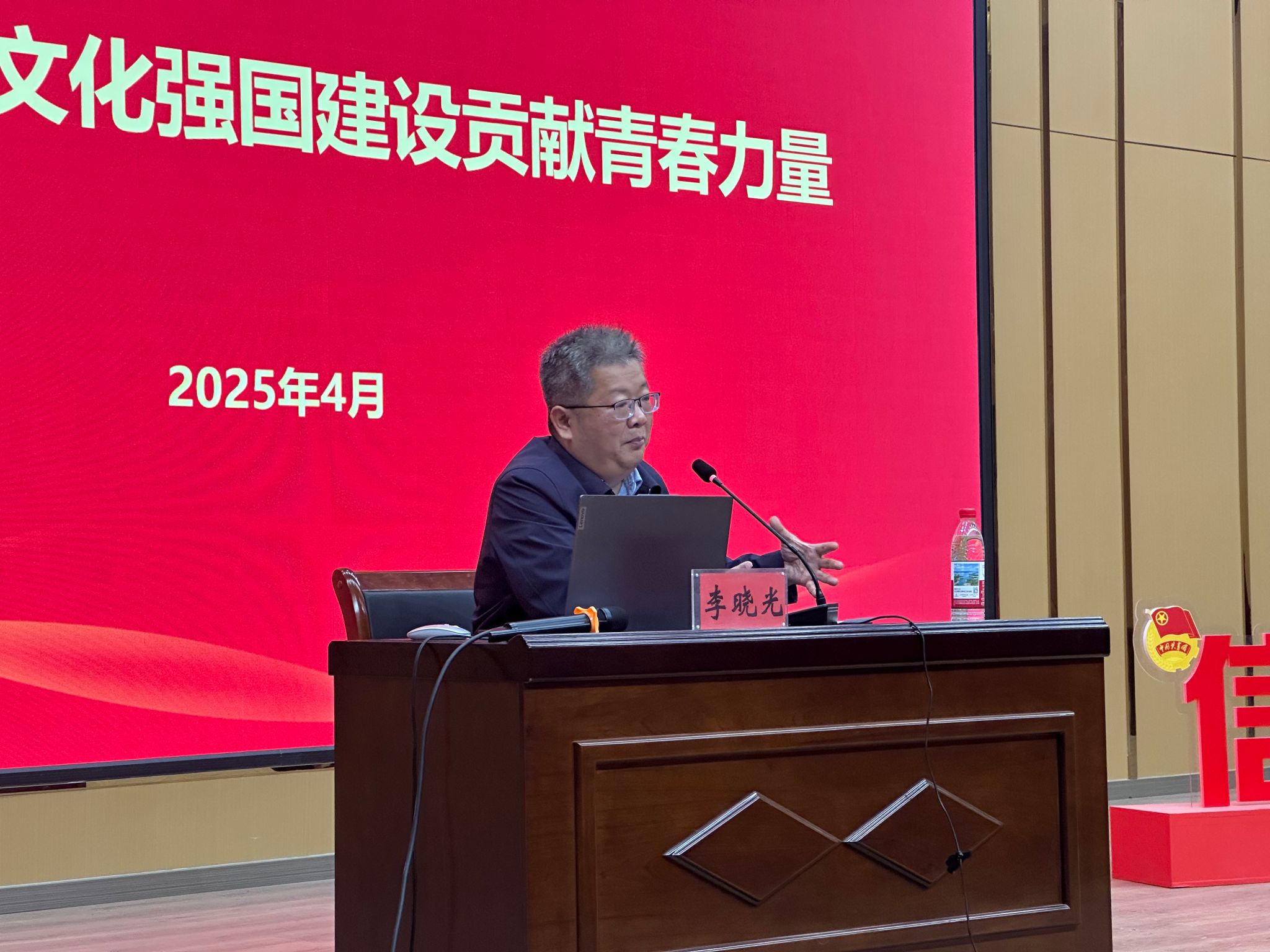 李晓光以《为社会主义文化强国建设贡献青春力量》为题,围绕中华优秀传统文化历史传承、社会主义文化强国建设,深入阐述了“文化自信”的内涵,号召青年一代要挺膺担当,以高度的文化自觉担负新时代的文化使命,让中华文化在新时代绽放更加绚烂的光彩。