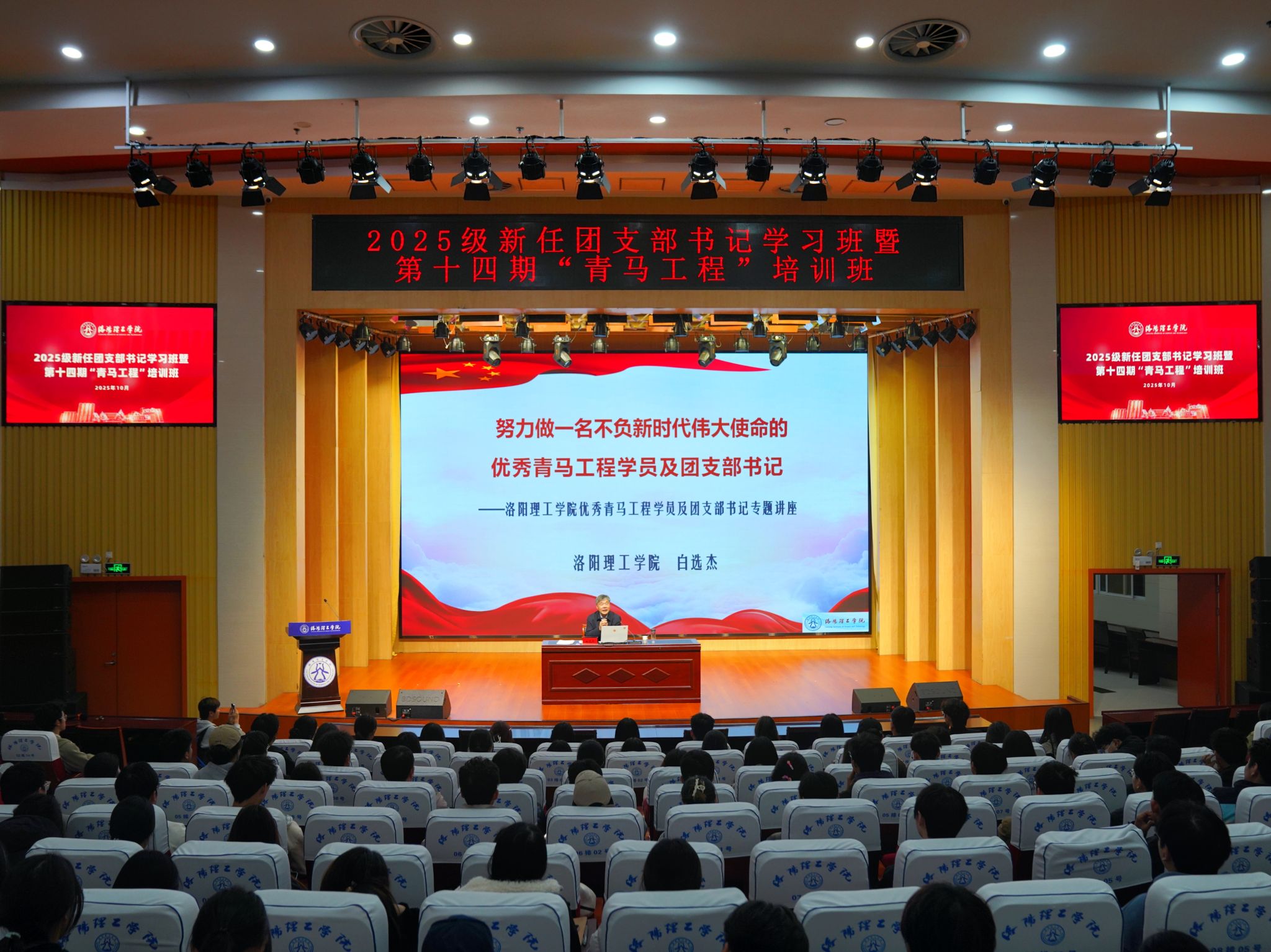 10月21日,校团委邀请校形势政策宣讲团成员白选杰教授,在校王城校区图书信息中心报告厅面向2025新任团支书及第十四期“青马工程”学员近400名学生进行了政治理论授课。