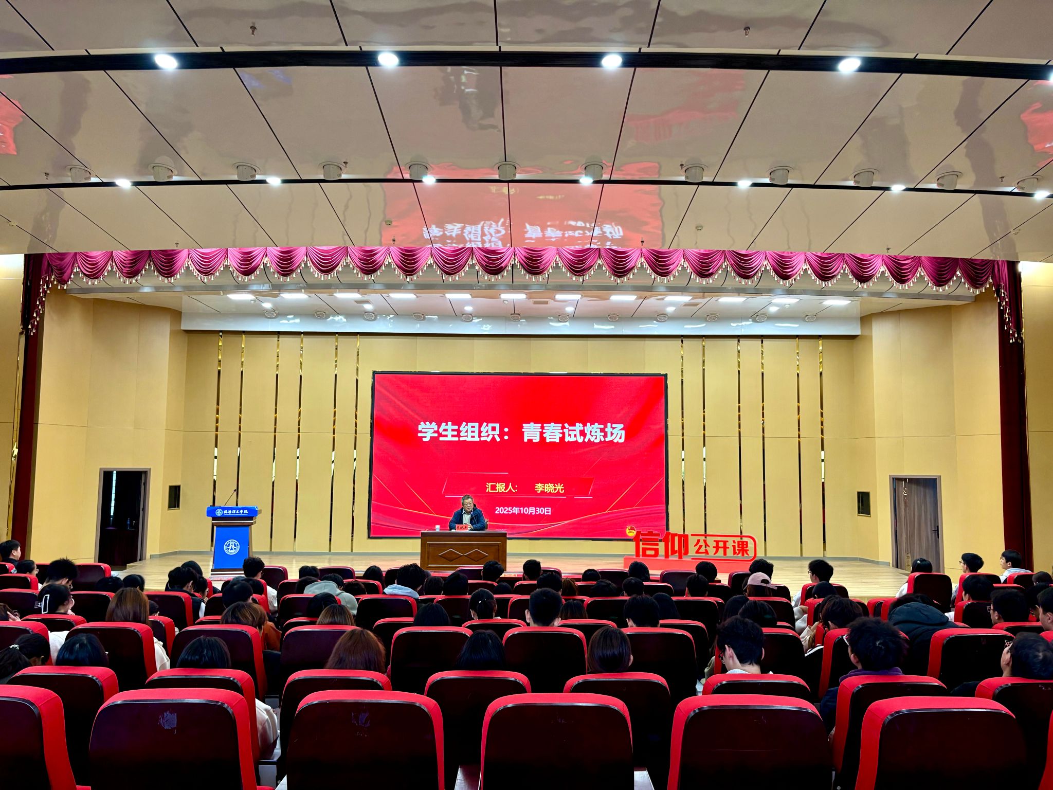 10月30日下午,校团委邀请校形势政策宣讲团成员李晓光老师,在开元校区图书馆报告厅为2025级新任团支部书记“青马工程”学员开展专题授课。