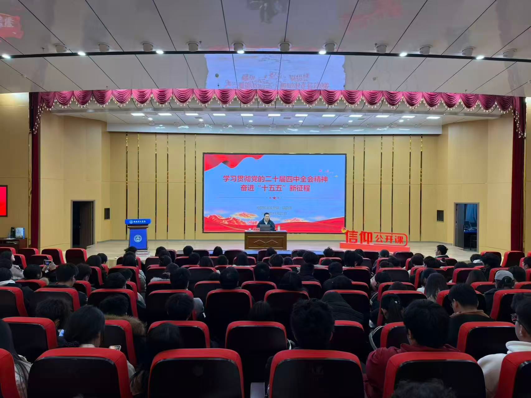 邓辰辉老师从党的二十届四中全会基本概况,“十五五”时期在基本实现社会主义现代化进程中的重要地位,“十五五”时期经济社会发展的指导方针和主要目标等方面进行了详细阐述,从年轻人关心的就业、收入、消费、科研、住房、文旅等方面深刻解读了国家的战略任务和重大举措。他号召广大青年学子持续深入学习贯彻党的二十届四中全会精神,以奋斗姿态激扬青春、追逐梦想,为中国式现代化挺膺担当,奋进“十五五”新征程!