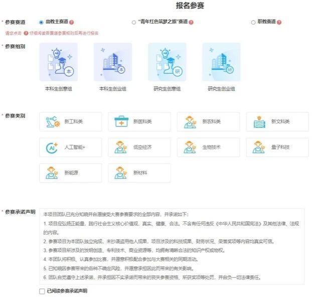 请仔细阅读各赛道参赛条件后再进行报名,若您填写的项目信息不符合所报赛道及组别的参赛要求,您将无法报名。