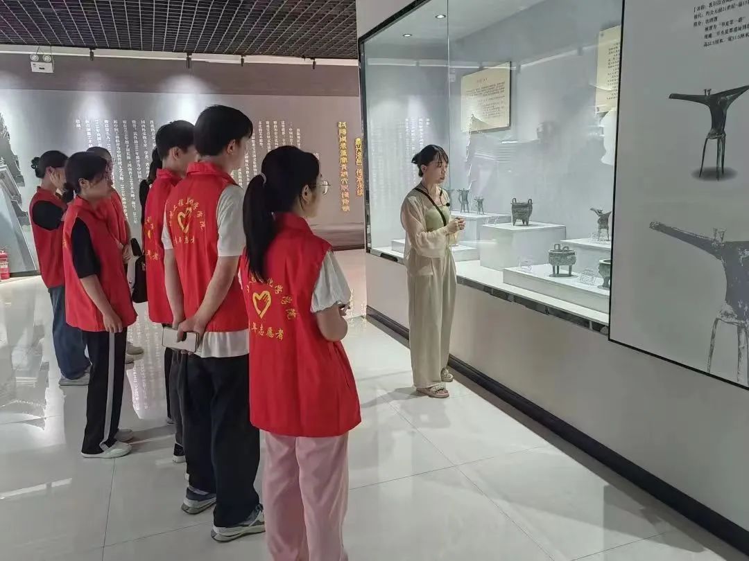 二楼展区里,各类青铜器食具、饮具、兵器、乐器等逐一展现在眼前,让志愿者们对古代工艺的实用性和审美价值有了更深刻的认识。在介绍员的引导下,志愿者们穿越历史的长河,领略了不同朝代青铜器的独特魅力。从商周的神秘到战国的灵动,再到秦汉的雄浑,每一件青铜器都是那个时代精神的见证者。