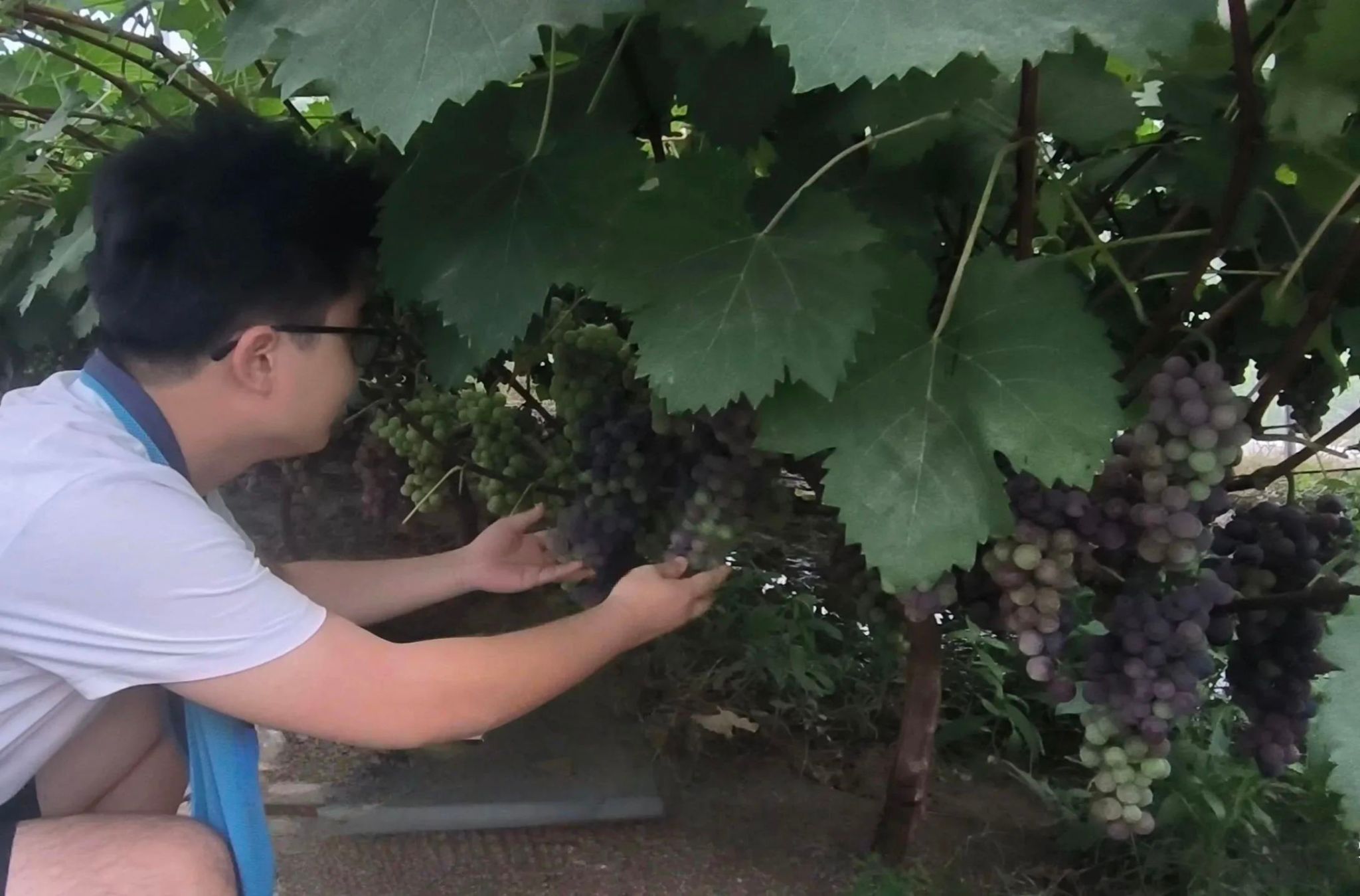 第二站,实践团成员来到了万寨村果蔬产业园,观察果蔬的生长状况。通过访问得知,万寨村积极推动农业结构调整和产业升级,在此过程中,葡萄种植技术的发展具有重要的支撑作用。这让实践团意识到,发展特色农业,打造本土品牌,更有助于乡村振兴战略的实施。