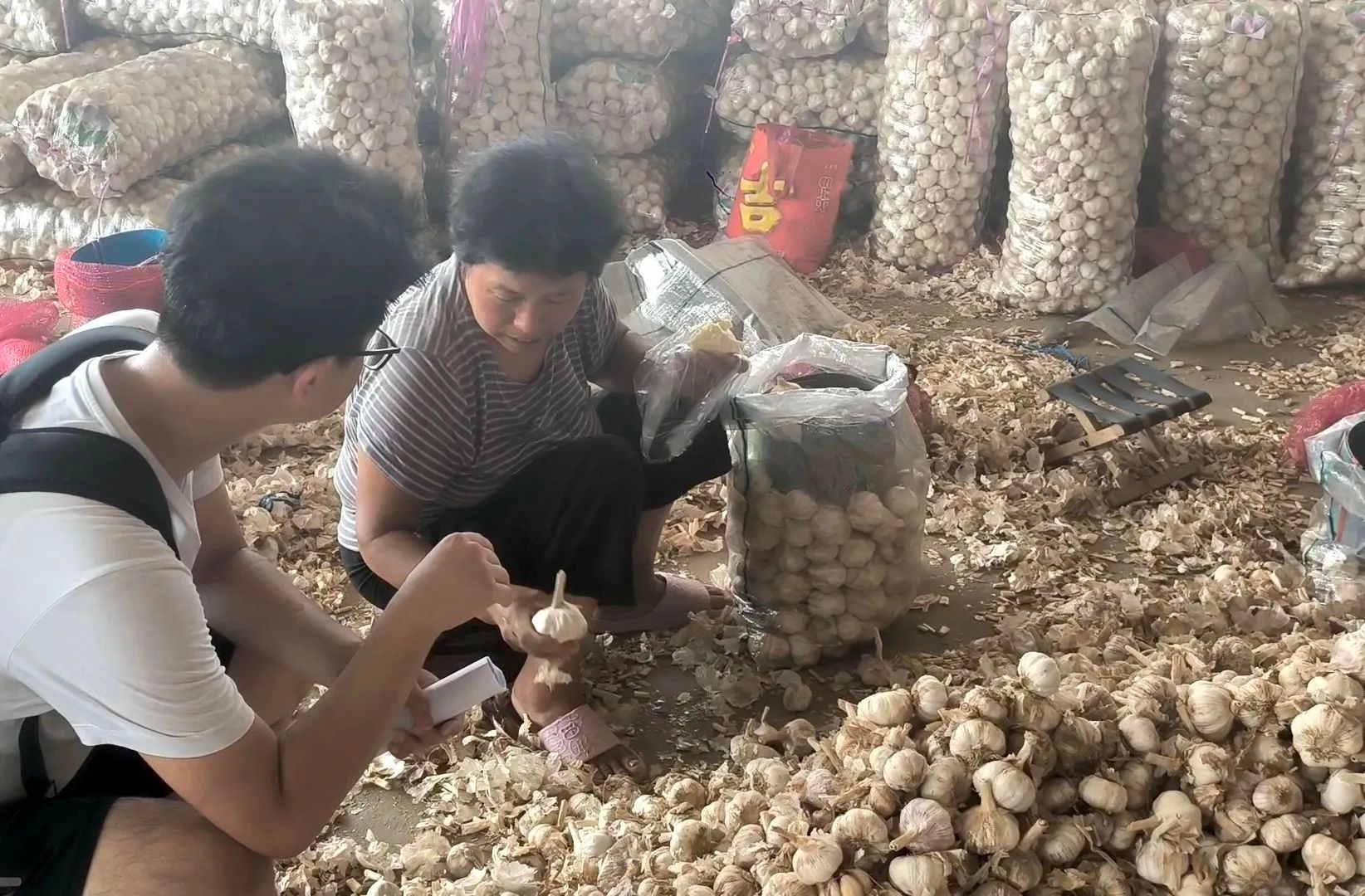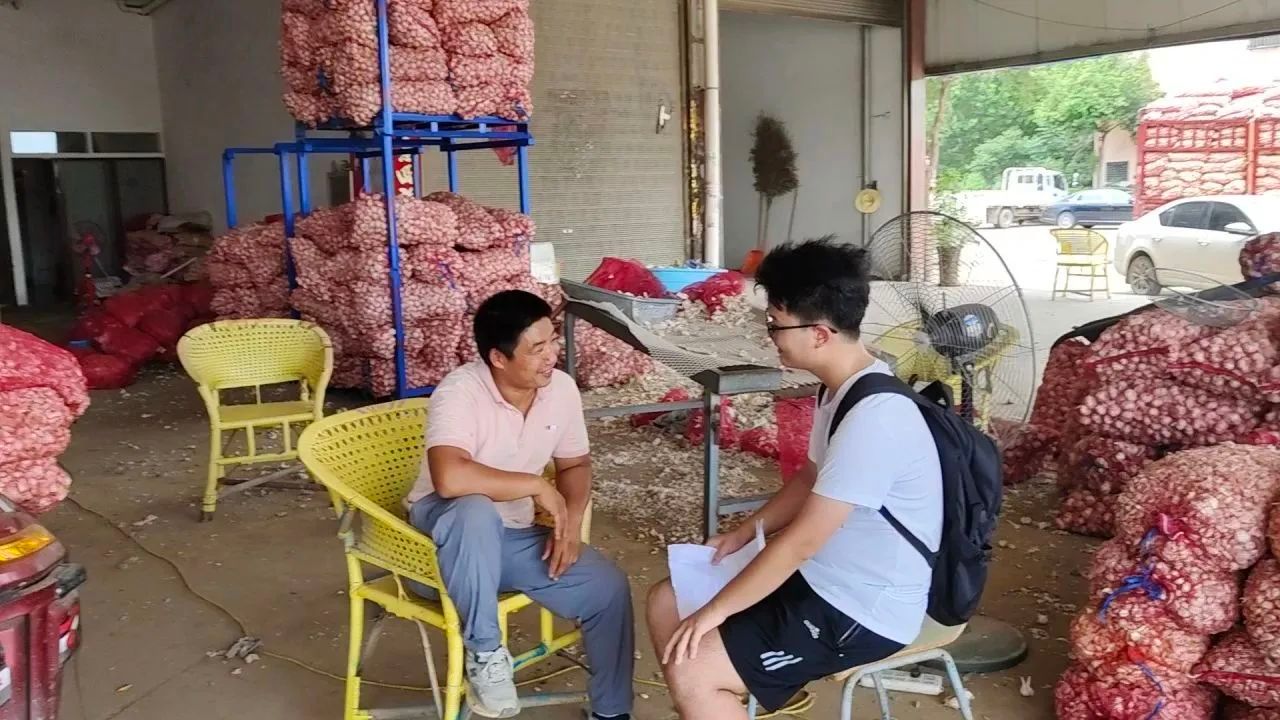 接着,实践团成员前往杞县大蒜国际交易市场展开调研。杞县被誉为“中国大蒜种植第一县”,素有“世界大蒜看中国,中国大蒜看杞县”的美誉。通过采访,实践团成员了解了从大蒜采购到大蒜销售的各个环节,以及影响大蒜价格的因素。大蒜销售商会对每一步都严格把关,以确保大蒜的质量。只有确保产品的品质,才能打造出享誉全国的品牌。