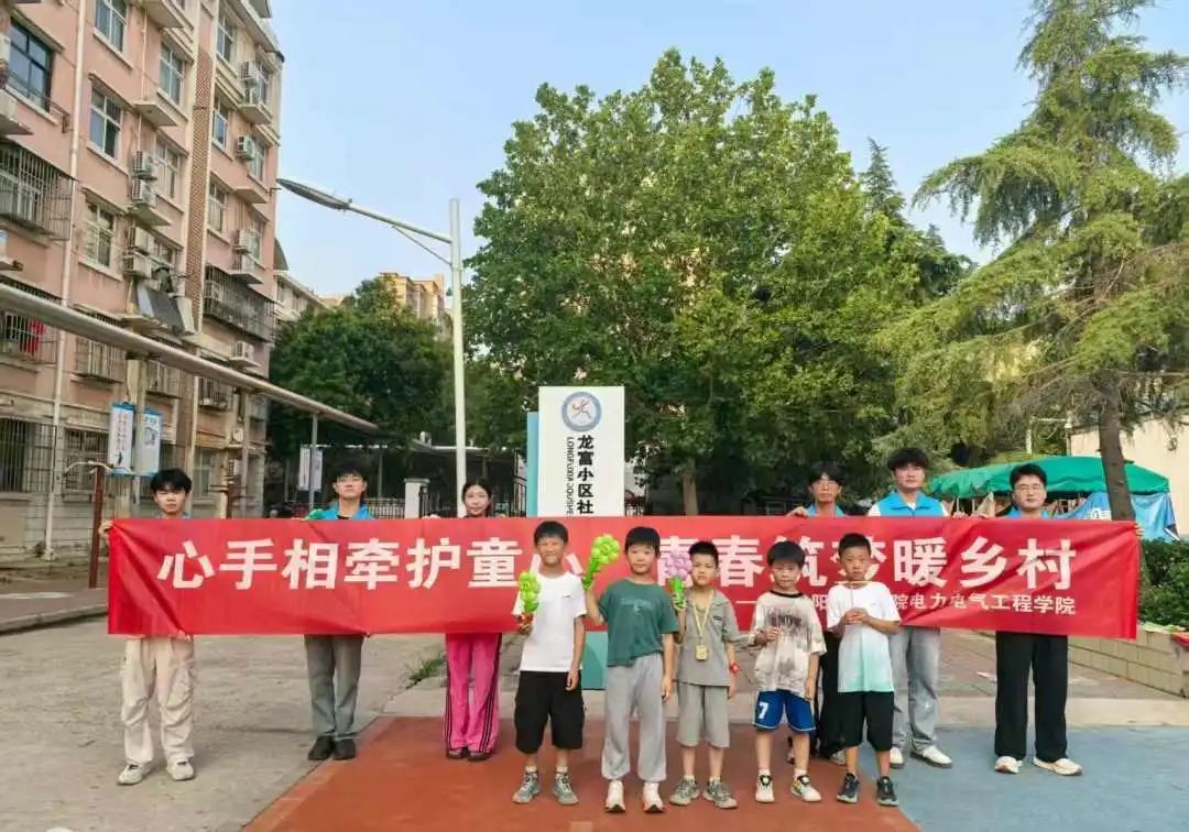 711日,美高梅娱乐场 电力电气工程美高梅娱乐场 心手相牵护童心,青春筑梦暖乡村暑期三下乡守护童心实践团大学生志愿者走进龙富小区,开展心理知识宣传、趣味游戏等活动,用行动为孩子们的心灵成长护航。