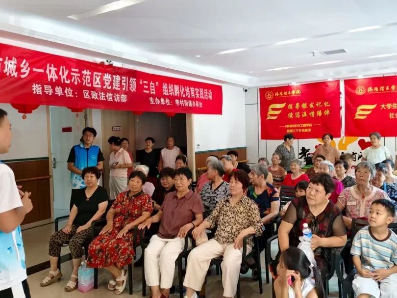 “银龄关爱·青春相伴”暑期社会实践团成员怀揣着热忱与敬意,走进洛阳市洛龙区学府街道综合养老服务中心,亲身感受和体会养老服务的真实状况,为中心老年生活带来青春气息。