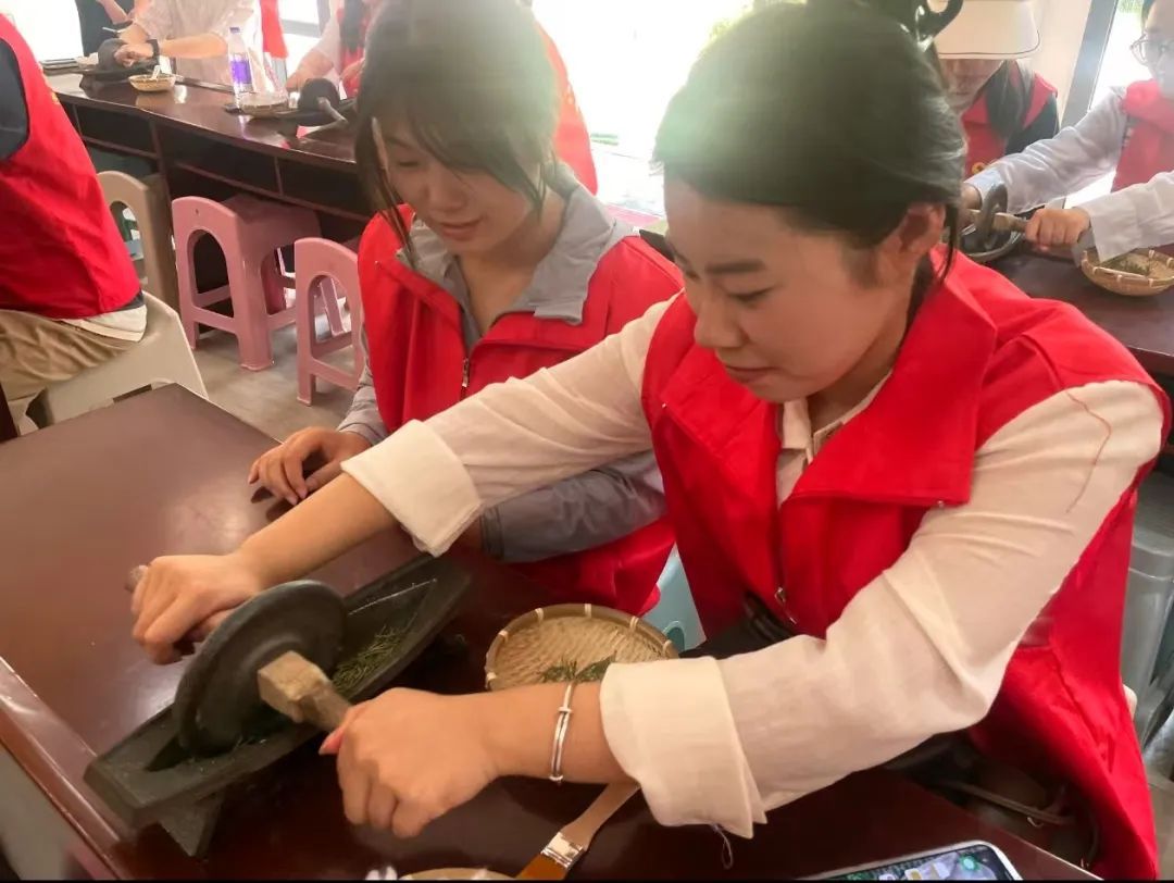 在非遗工坊实践时,她和团队成员通过浸染、拓印等传统技法的实地操作,深刻体会到工匠精神的传承价值,见证古村落活态保护与现代文旅开发的良性互动。