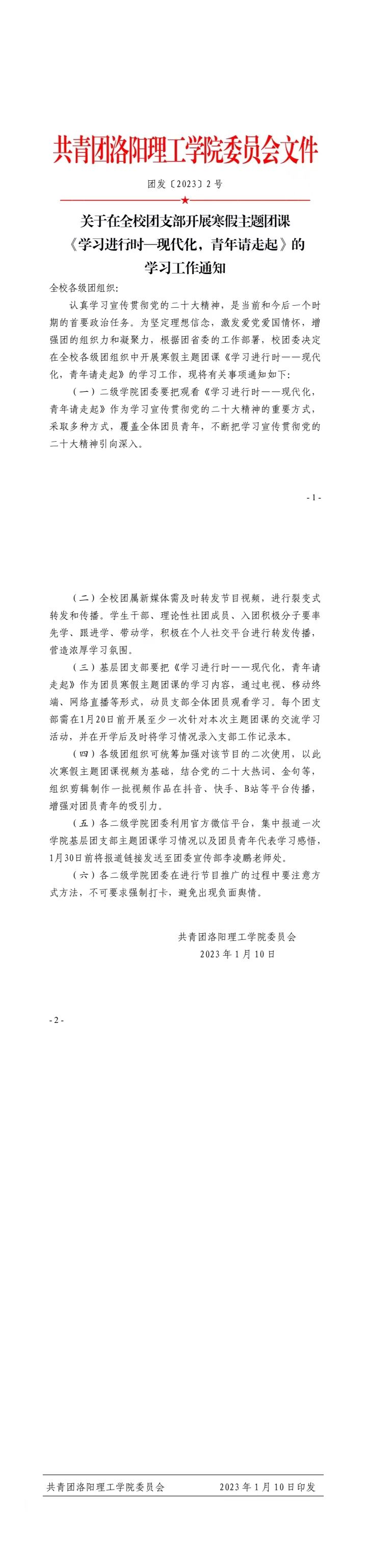 关于在全校团支部开展寒假主题团课《学习进行时—现代化,青年请走起》的学习工作通知