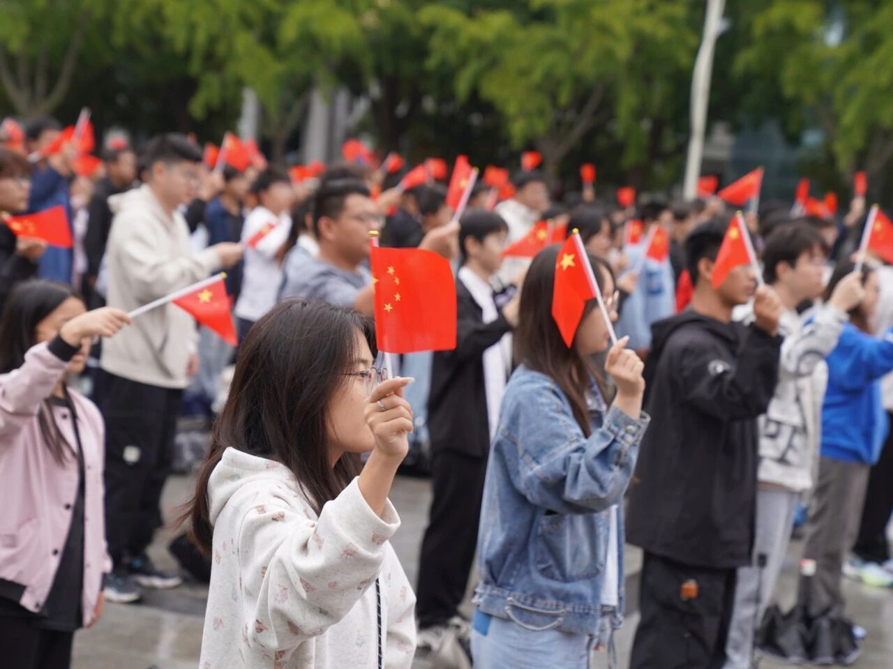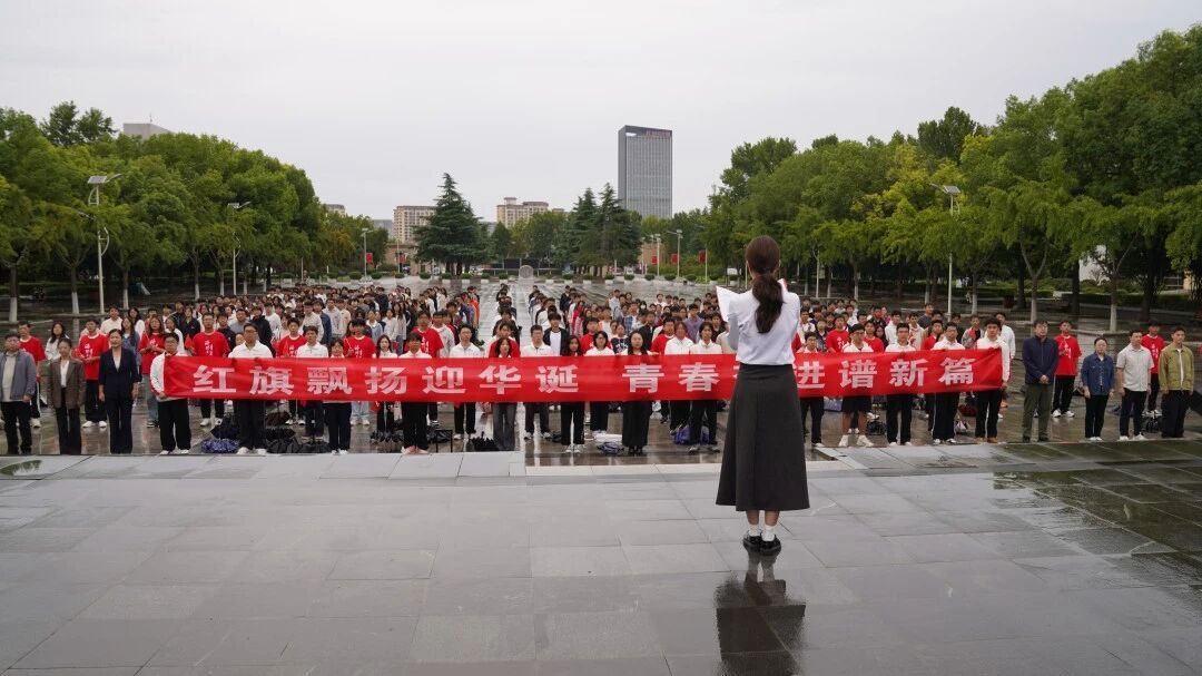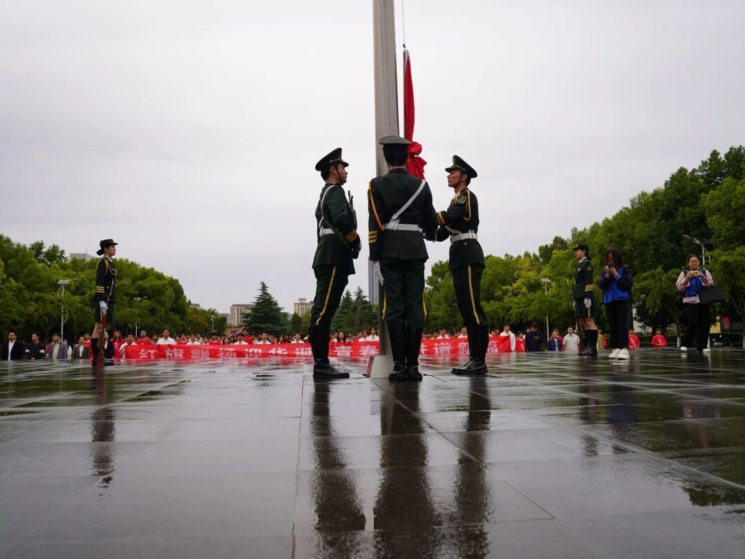 在王城校区鼎元广场举行升旗仪式,庆祝中华人民共和国成立76周年。尽管清晨飘着细雨,却丝毫未减弱师生们的热情。校团委全体成员、各二级分团委负责人、大学生艺术团、灯塔研习社成员及各美高梅娱乐场