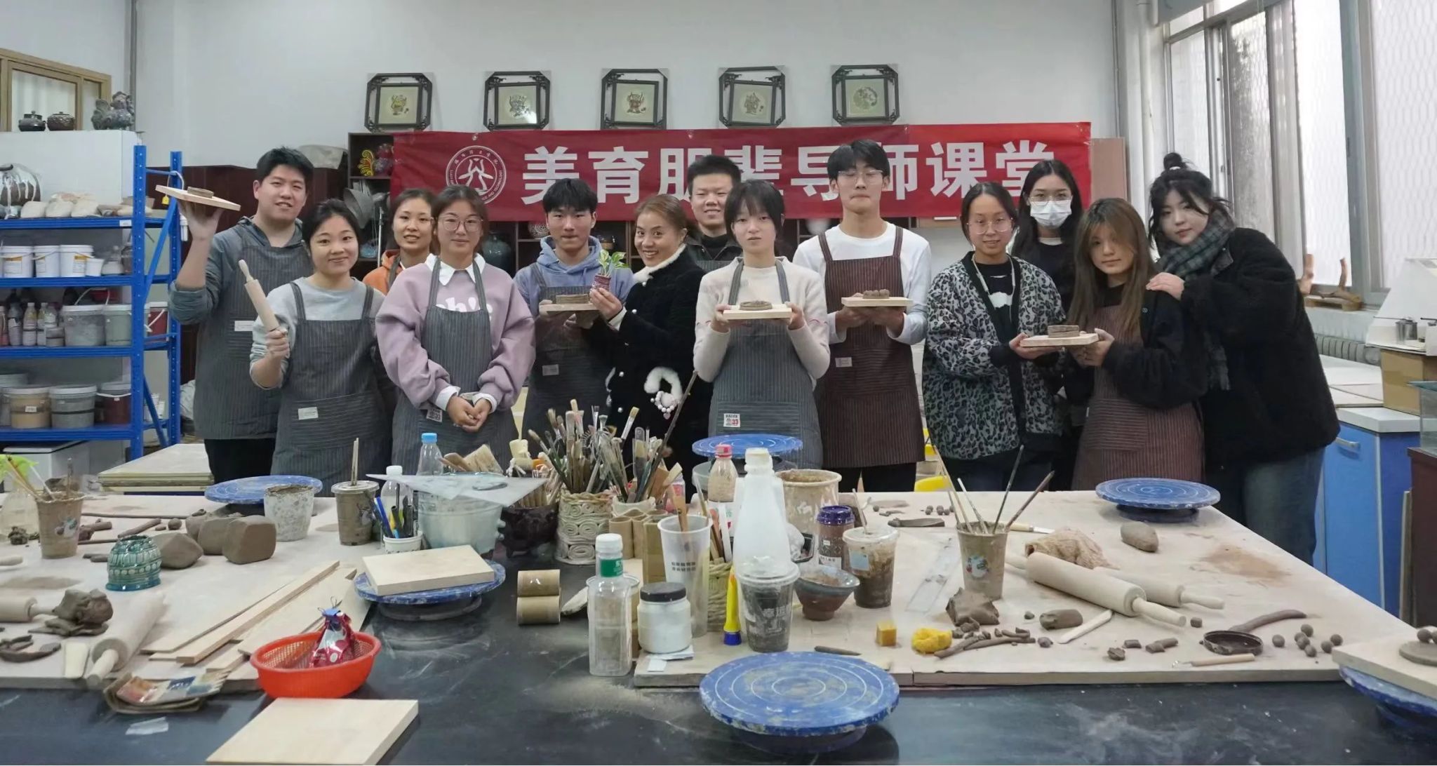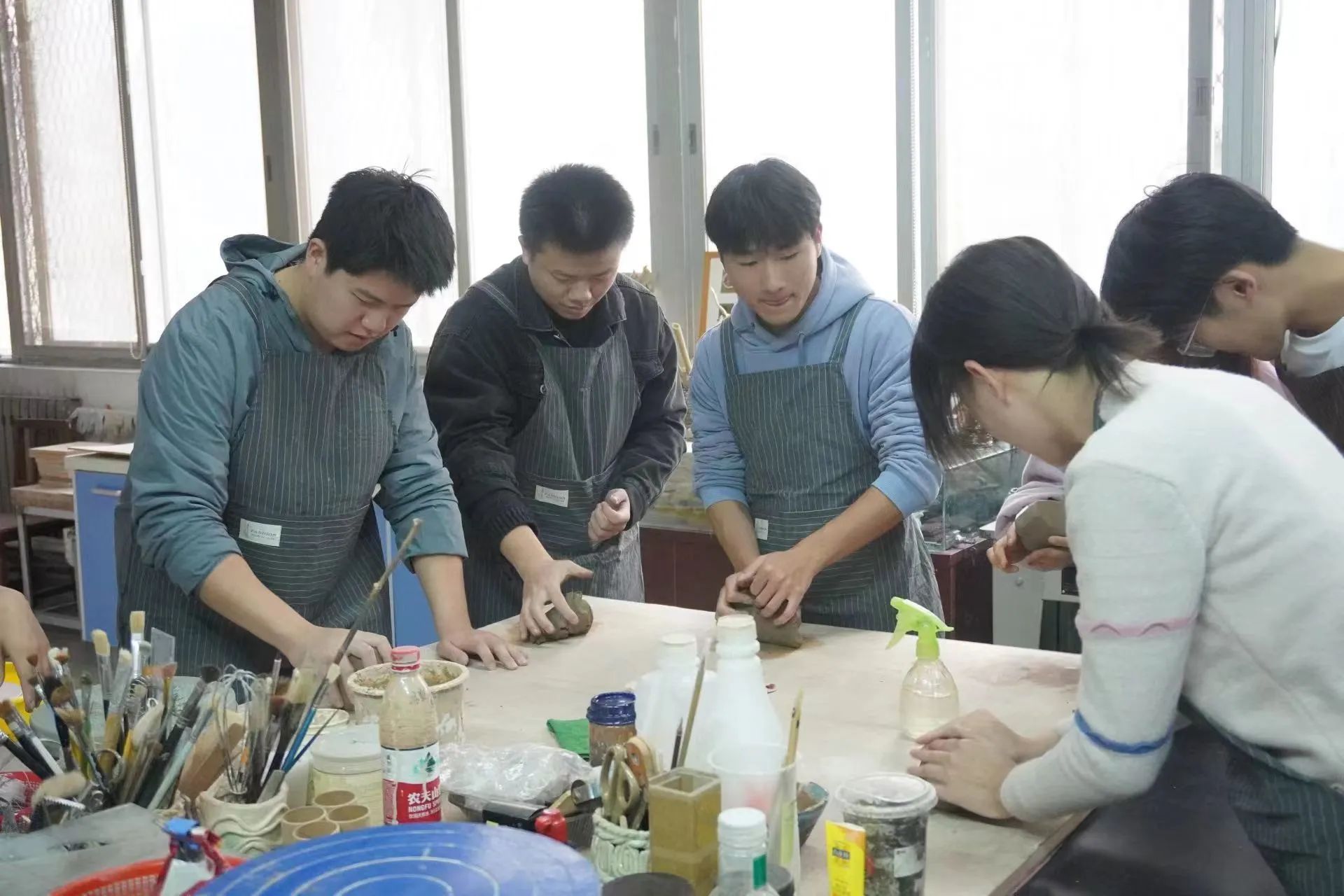 本次美育朋辈课堂在九都校区SS楼1楼陶艺工作室展开,以陶艺为主题,导师引导同学们在陶土的柔软怀抱中,尽情挥洒想象,将无形的情感化为有形的艺术品。
