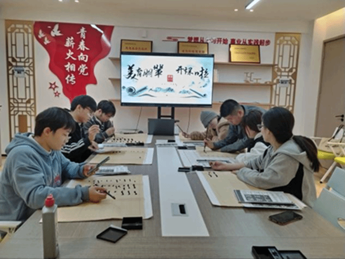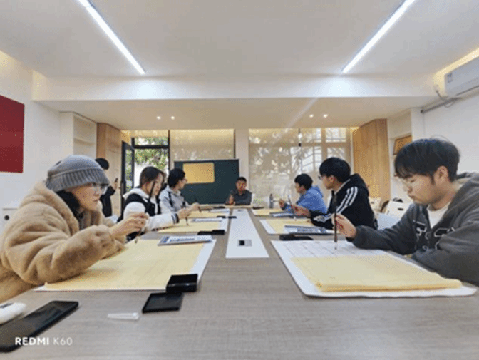 在书法活动中,朋辈导师陈嘉伟引导同学们了解基础技法,从多方面进行了认真系统的讲解,手把手地开展了实践辅导。寓教于乐将书法知识传递给每一位热爱书法的同学们,也在校园里打造浓厚的美育氛围。