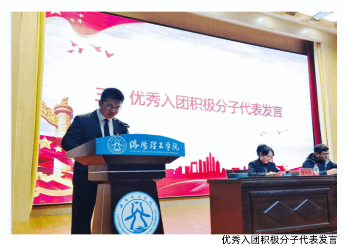入团积极分子代表温俊杰同学发言,表示作为入团积极分子,将时刻牢记自己的身份,以身作则,自觉遵守团的章程和规定,坚决维护党中央权威,始终坚定理想信念,积极传播党的声音。不断提高自身素质,自觉接受组织的培养和考察,争取早日入团。