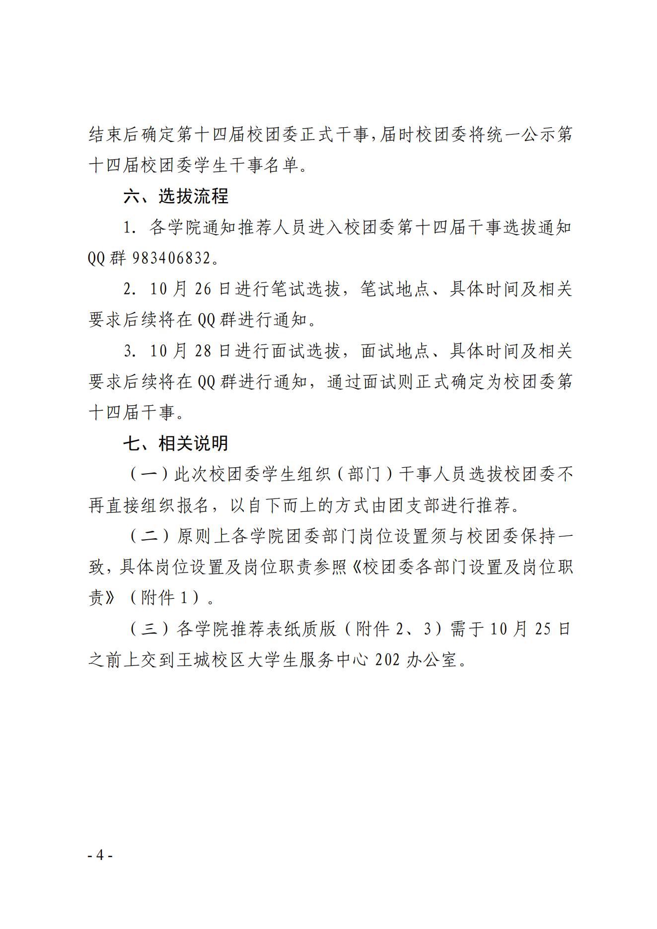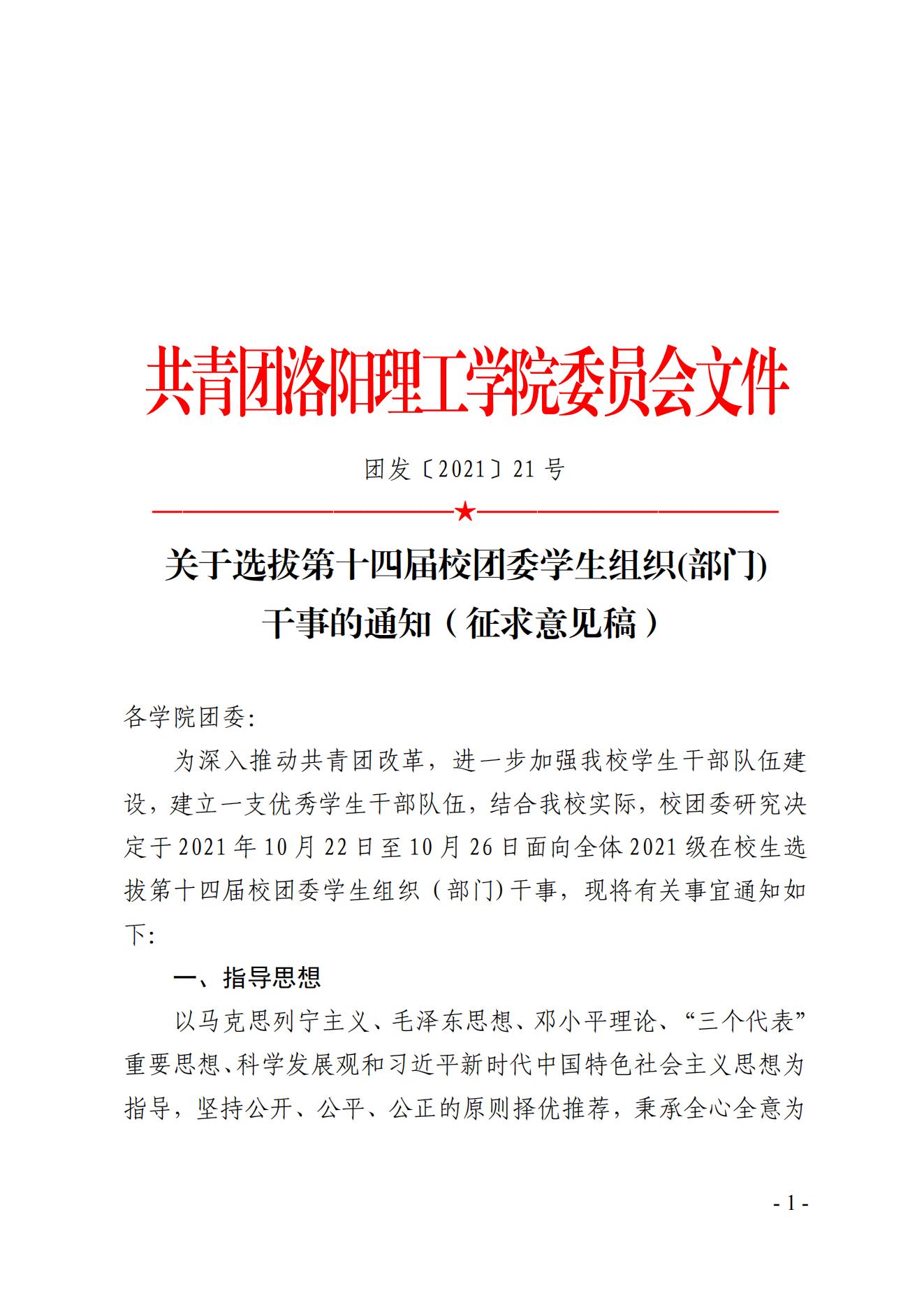 关于选拔第十四届校团委学生组织(部门)干事的通知(征求意见稿)