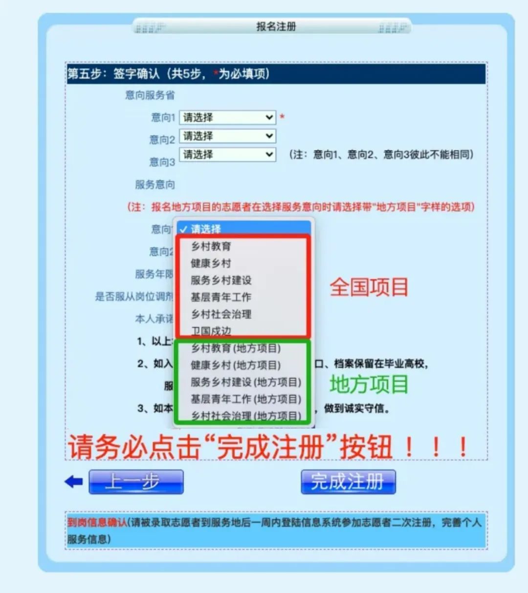 如果你想报名西部计划全国项目,请在选择岗位专项时选择不带“地方项目”的选项;如果你想报名西部计划地方项目,请在选择岗位专项时选择标有“地方项目”的选项。