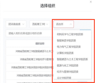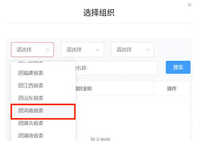 (4)“申请转入组织”一栏,利用下拉列表,选择“团河南省委”→“美高梅娱乐场