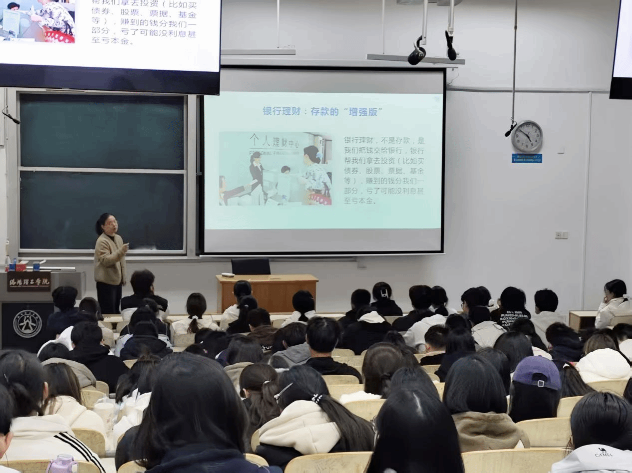 在互动环节,同学们就实习工资分配、学生定投方式等积极提问。王雪然老师逐一解答,并演示了如何筛选基金与评估风险,鼓励大家从管理“小钱”开始,逐步建立个人财务系统,为未来打下基础。