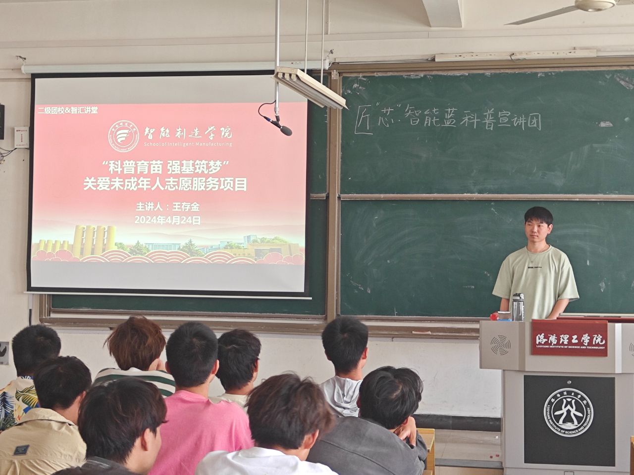 学生会副主席兼青年志愿者协会会长王王存金作以《科普育苗 强基筑梦》为主题的授课,介绍匠“芯”智能蓝科普宣讲团的发展情况,23级团支书、副团支书参会。他表示,宣讲团切实走到龙祥社区、泉舜社区以及田山社区等社区中,为未成年小朋友们进行科普宣讲活动,让大家对宣讲团的职务、初心和使命有了更加清晰的认知,更激发了同学们投身其中的热情。