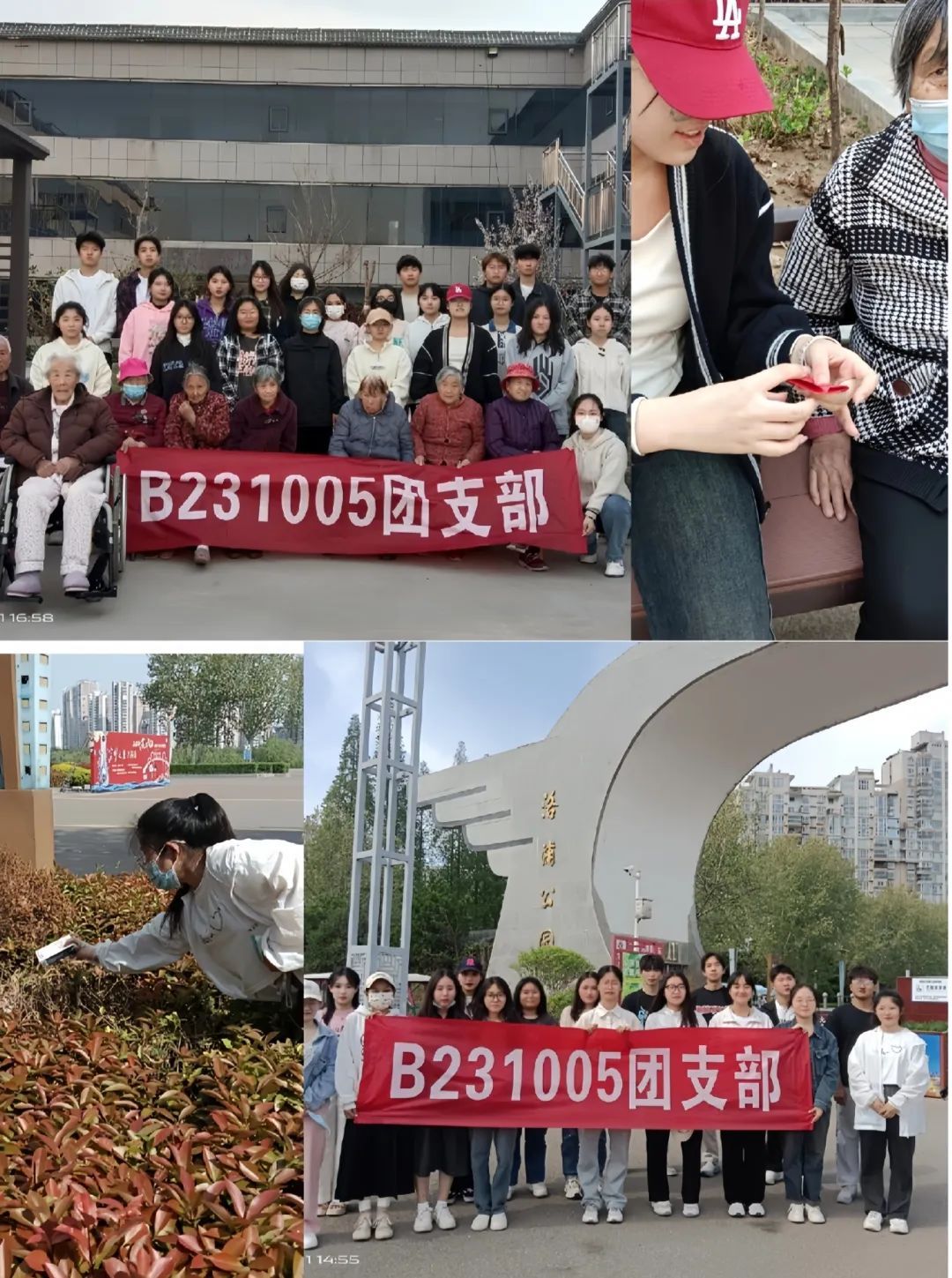 为贯彻落实习近平新时代中国特色社会主义思想,B231005团支部团结一致,以饱满的热情服务社会。团支部成员们拥有强大凝聚力、自信力,具有浓厚的社会奉献精神与社会责任感,在城市文明建设方面与公益志愿奉献等方面均贡献出自己的一份力量。