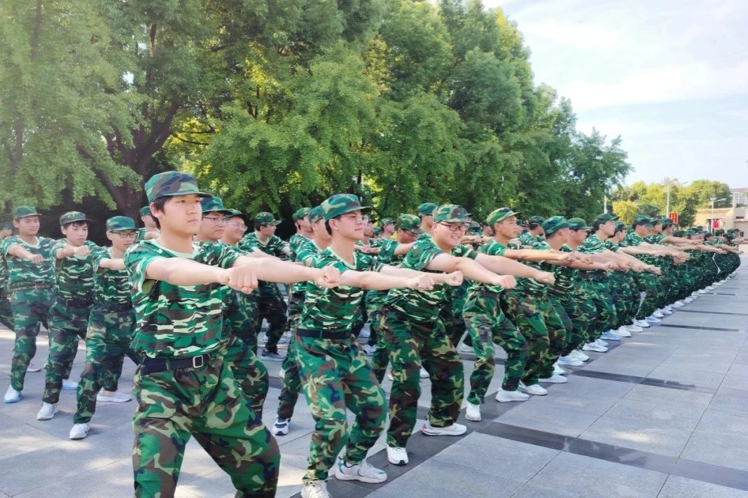在王城校区开展军训活动。军训不仅是个体的历练更是团队精神的培养。他们整齐的步伐声、响亮的口号声回荡在军训场上。每位同学都以昂扬的气势迎接着眼前的困难。