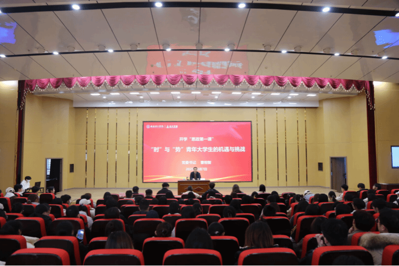 在开元校区学术报告厅举行了主题为“‘时’与‘势’青年大学生的机遇与挑战”的开学“思政第一课”。主讲人分析了当代青年大学生所面对的形势以及可能遇到的机遇挑战,并对学生们提出了四点期望,激发了同学们的责任感和使命感。