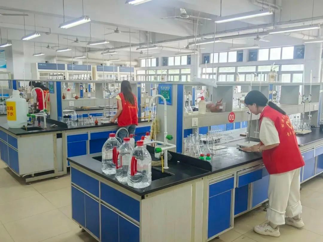 在实验楼开展“青春力行 劳动筑梦”主题劳动教育活动。同学们身着红色志愿服,分工有序进行实验室清洁,擦拭台面、整理仪器、清扫地面。此次活动将思政与专业素养培育融合,提升了同学们的劳动素养与责任意识。