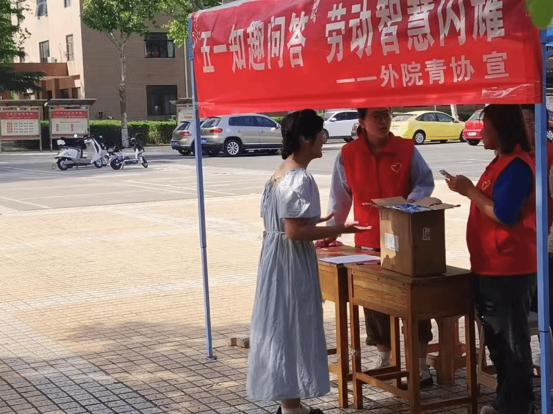 青年志愿者协会在开元校区太学广场举办“五一知趣问答,劳动智慧闪耀”志愿活动。志愿者提前布置场地,邀请同学参与知识问答并赠零食,现场气氛热烈。此次活动以寓教于乐的方式,让同学们加深对劳动价值的理解,推动校园精神文明建设,促进劳动文化与校园生活融合。