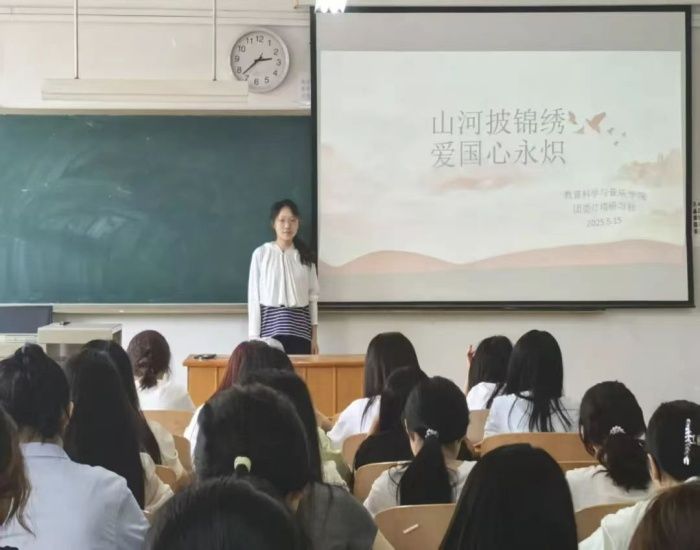 在开元校区师范楼313教室开展“山河披锦绣,爱国心永炽”专题研讨会。