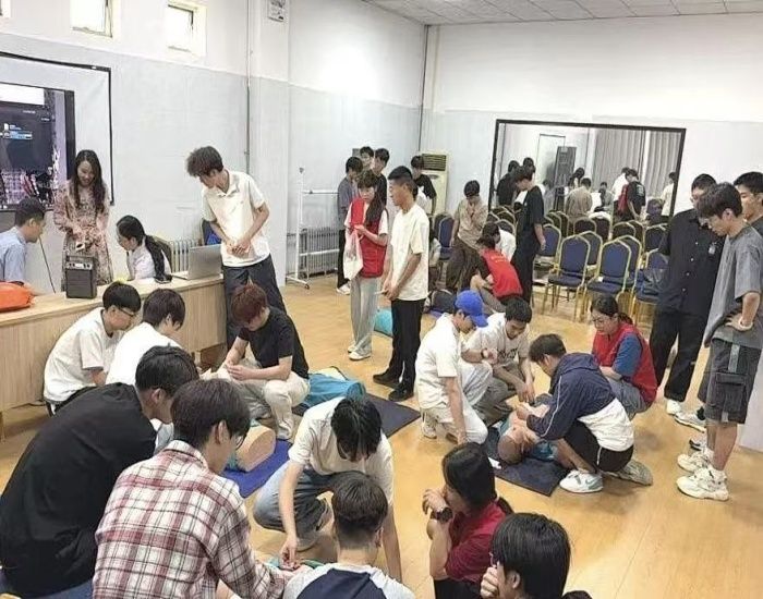 在王城校区致新社区铭四A宿舍楼三楼活动室举办“急救先锋”专题培训活动。活动以“黄金急救四分钟”开场,结合案例讲解心肺复苏、海姆立克急救法等知识,通过图文、视频解析要点,并在实操环节中,示范急救动作,学生分组练习并加以指导,总结强调层长职责与急救意义。此次培训提升宿舍管理队伍急救能力,为建设平安社区筑牢基础。
