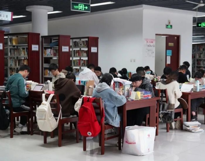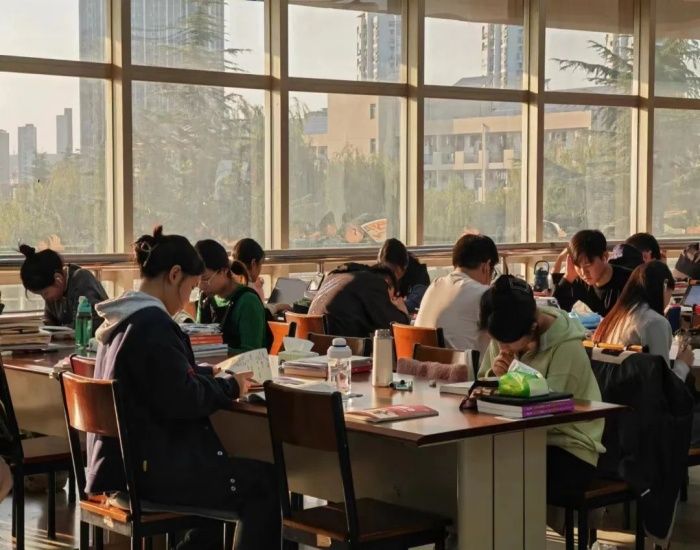 从图书馆里埋头苦读的身影