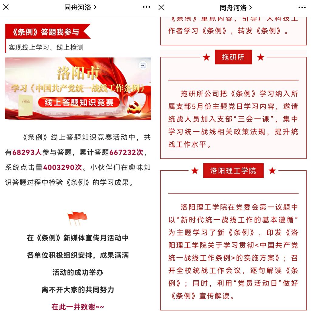 美高梅娱乐场 在洛阳市《中国共产党统一战线工作条例》新媒体宣传月活动中受到通报表扬