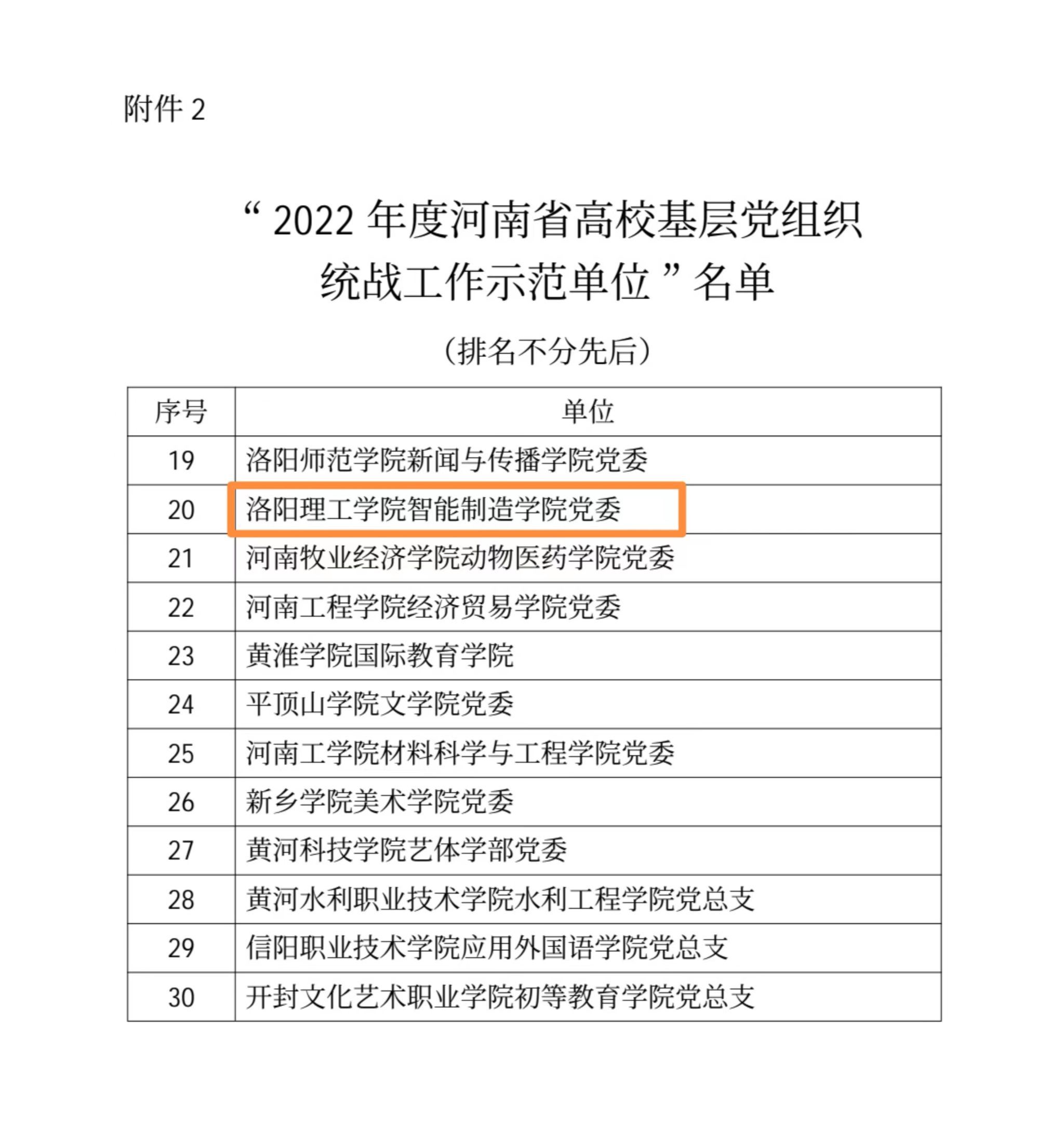 近日,中共河南省委教育工委、河南省教育厅下发通知,美高梅娱乐场 智能制造美高梅娱乐场 党委获评“2022年度河南省高校基层党组织统战工作示范单位”。