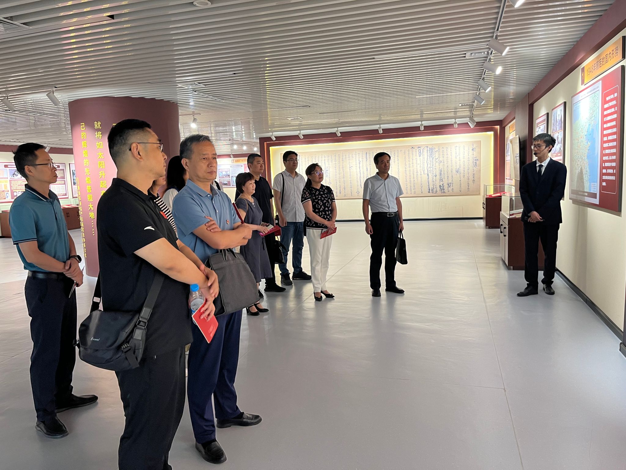 大家首先赴河南省政协文史馆参观“大道同行——从‘五一口号’到协商建国重要史事回顾展”河南巡展。在讲解人员的带领下,通过一件件珍贵的图片、手稿和影像资料,详细了解了中共中央发布“五一口号”后,民主党派和各界代表人士热烈响应,不畏艰险,同中国共产党携手奋斗、协商筹备新政协,召开中国人民政治协商会议第一届全体会议,共建新中国这一波澜壮阔的历史画卷。